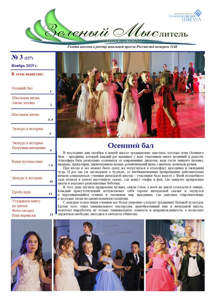 Школьная газета Зеленый Мыслитель (Ноябрь 2025) от Администратор | Дек 5, 2025 | Зеленый Мыслитель, Новости