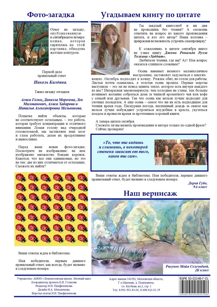 Школьная газета Зеленый Мыслитель (Октябрь 2025) от Администратор | Ноя 2, 2025 | Зеленый Мыслитель, Новости, Школа