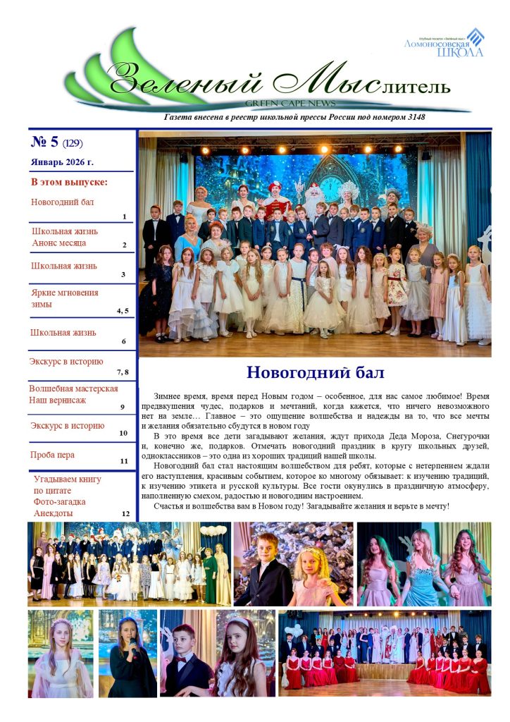 Школьная газета Зеленый Мыслитель (Январь 2025) от Администратор | Янв 30, 2026 | Зеленый Мыслитель, Новости