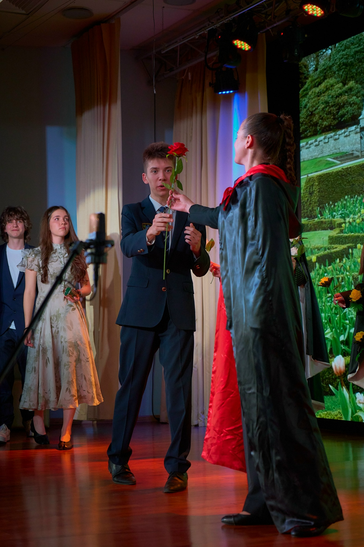Отдельной номинацией конкурса является «Театрализованная презентация книги на иностранном языке». В этом году на суд зрителей и жюри ученики 10 класса представили инсценировку сказки О. Уайльда «Соловей и роза» на английском языке.