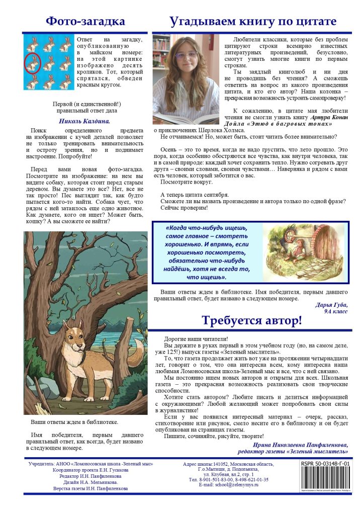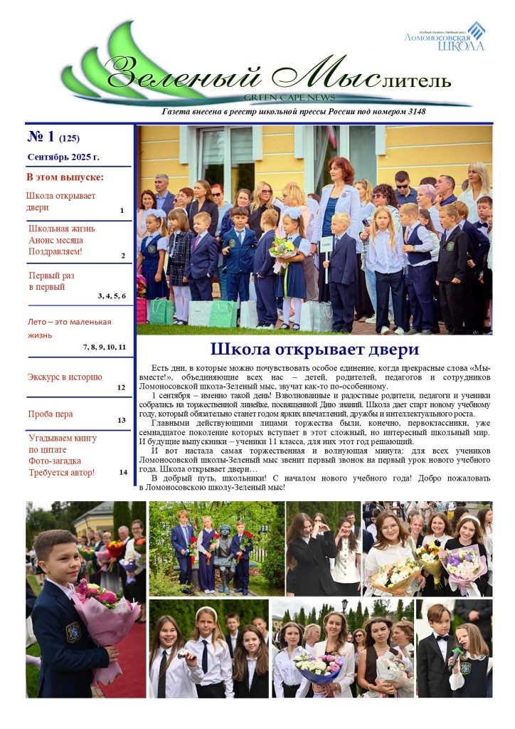 Школьная газета Зеленый Мыслитель (Сентябрь 2025) от Администратор | Окт 3, 2025 | Зеленый Мыслитель, Новости